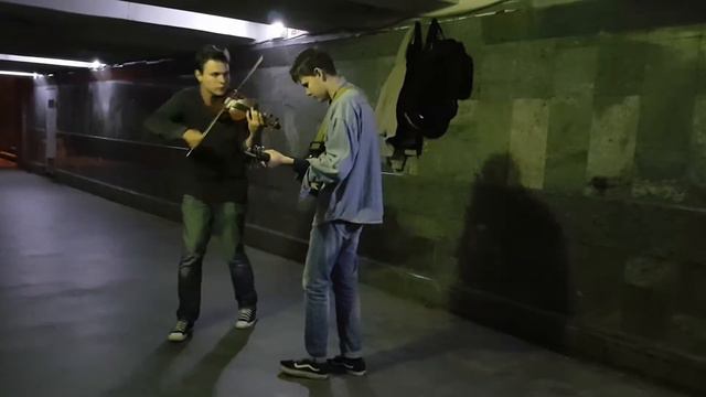 Дуэт скрипки и гитары в переходе Киева