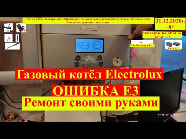 Ремонт своими руками газового котла электролюкс. #Electrolux Электролюкс. Ошибка Е3. Как починить газовый котел Electrolux (Электролюкс) - ошибка Е3 Ошибка е3 котла Электролюкс не самая сложная, и в большинстве случаев устраняется своими силами. В нашем случае оказался не исправен реле на 24 вольта. (нагар на контактах) Заменил на тот что был под рукой. (12 Вольтовое через стабилитрон 12 вольт) #Частныймастер Мастер на все руки Авито Юла #Ремонт газовых котлов или https://aliexpress.ru/item/1005004535743287.html?sku_id=12000029510404349