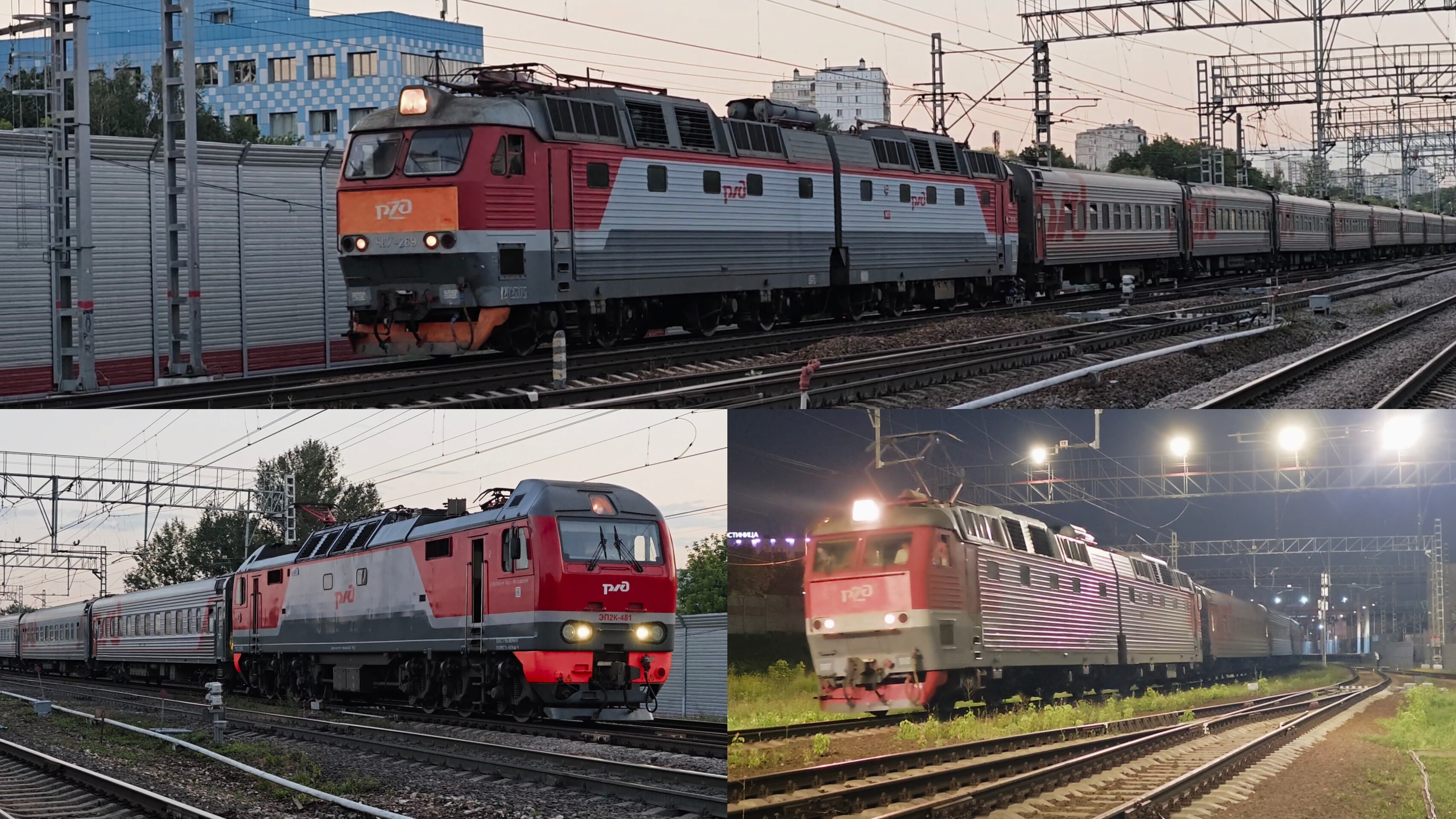 станция Царицыно | вечерние 3 дальних поезда под ЧС7 на юг и 1 с юга на ЭП2К