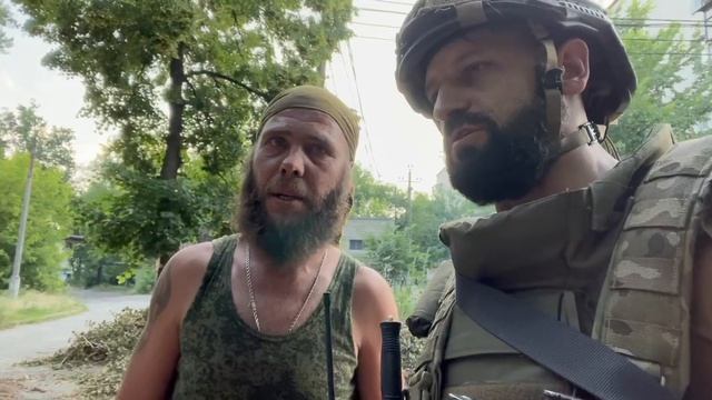 Все посадки Святогорска усыпаны минами «Лепесток», только что этот военнослужащий вывозил раненого мирного жителя, ему миной оторвало ногу. Мы приехали с разведкой и привезли людям небольшую гуманитарную помощь, по словам местных жителей это в первый раз.