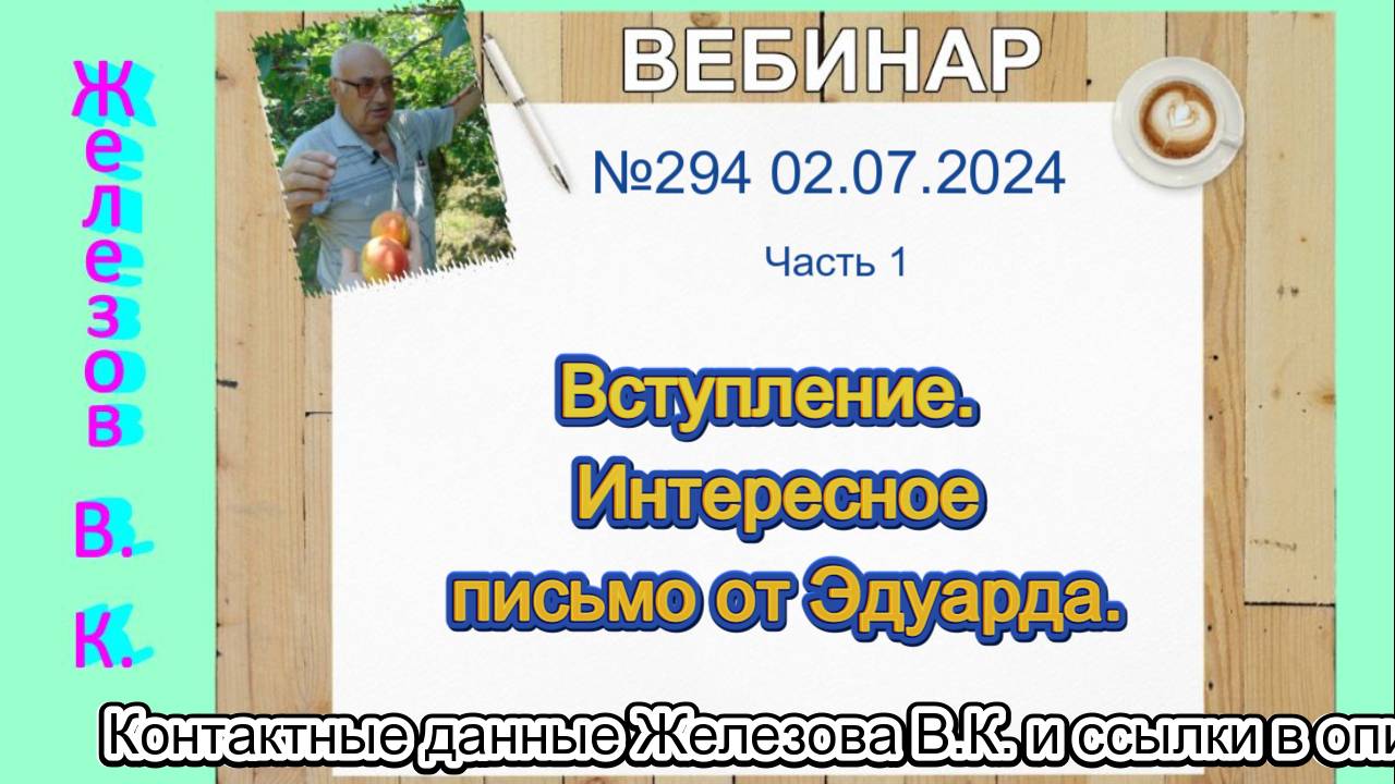 Железов Валерий. Вебинар 294. ч. 1. Вступление. Интересное письмо от Эдуарда.