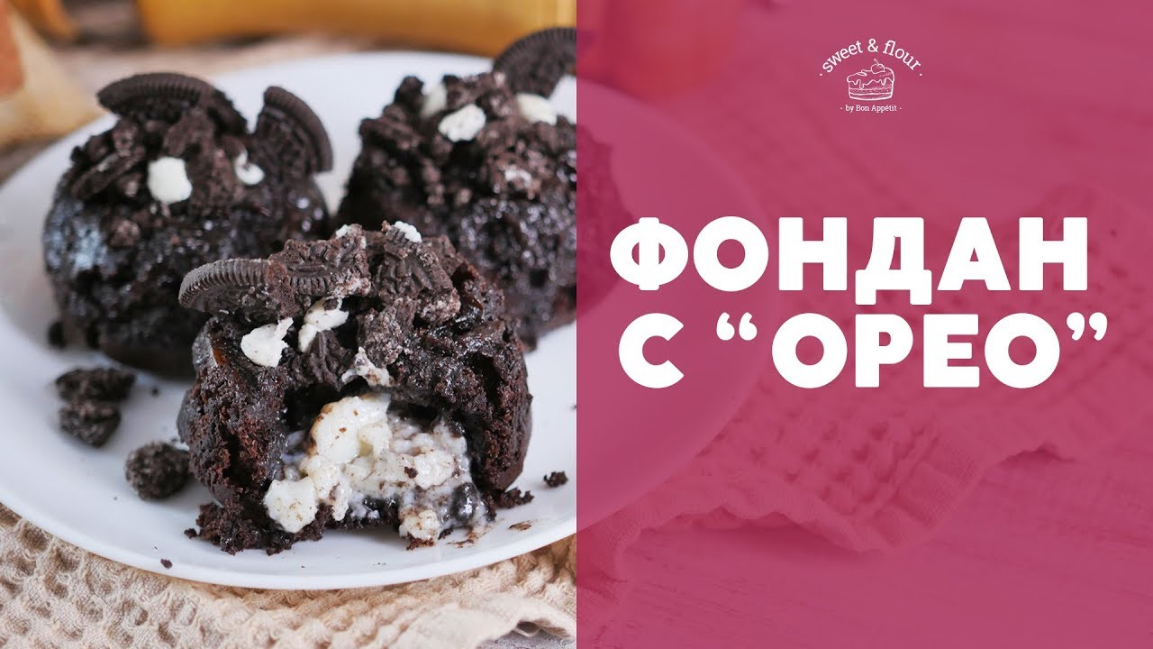 Подпишись на канал - https://goo.gl/vs9s9D Рецепт шоколадного десерта с “Орео” в нашем новом ролике. Как приготовить тающий фондан? Смотрите! Ингредиенты: Черный шоколад — 250 г Молоко — 185 г Пшеничная мука — 125 г Разрыхлитель теста — 1 ч. л. Растительное масло — 2 ст. л. Печенье “Орео” — 10 шт. + для украшения Сливочный пудинг — 1 стак. На 100 г — 297 ккал Приготовление: Растопите шоколад с молоком. Смешайте с мукой, разрыхлителем и маслом. Смешайте измельченное печенье и пудинг. Заполните формы тестом на ⅓. Добавьте пудинг. Равномерно распределите оставшееся тесто. Выпекайте (180 °C) 15-20 минут. Опрокиньте фонданы на сервировочные тарелки. Украсьте кусочками печенья. sweet & flour - видео рецепты выпечки и десертов на каждый день! Мы в социальных сетях: ВКонтакте: https://vk.com/swtnflour Instagram: https://www.instagram.com/swtnflour/