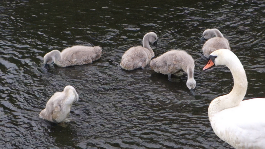 Лебедь Зигфрид - пять малышей. Гурьевский пруд, 07.06.2017 г.