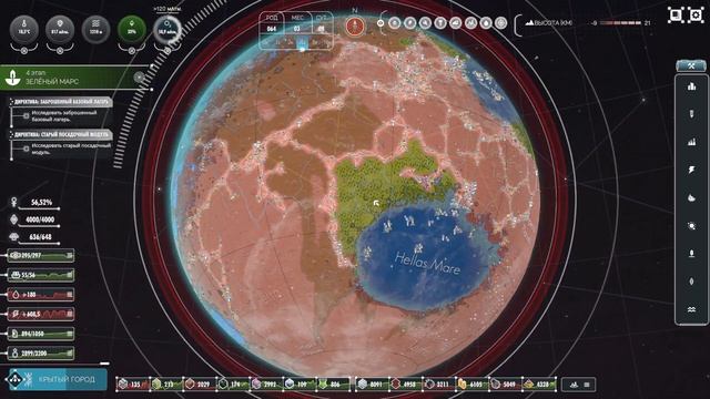 Почти добрался до секретного лагеря в секторе СА-6. Очень активно строю морскую инфраструктуру - почти построил все исследовательские станции на ранее затопленных местах. Построил ещё 3 или 4 биокупола, чтобы распространять растения по поверхности Марса.