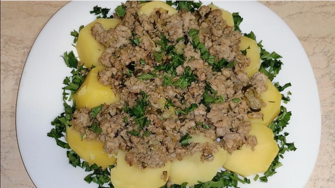 Картофель под огуречно - мясным соусом