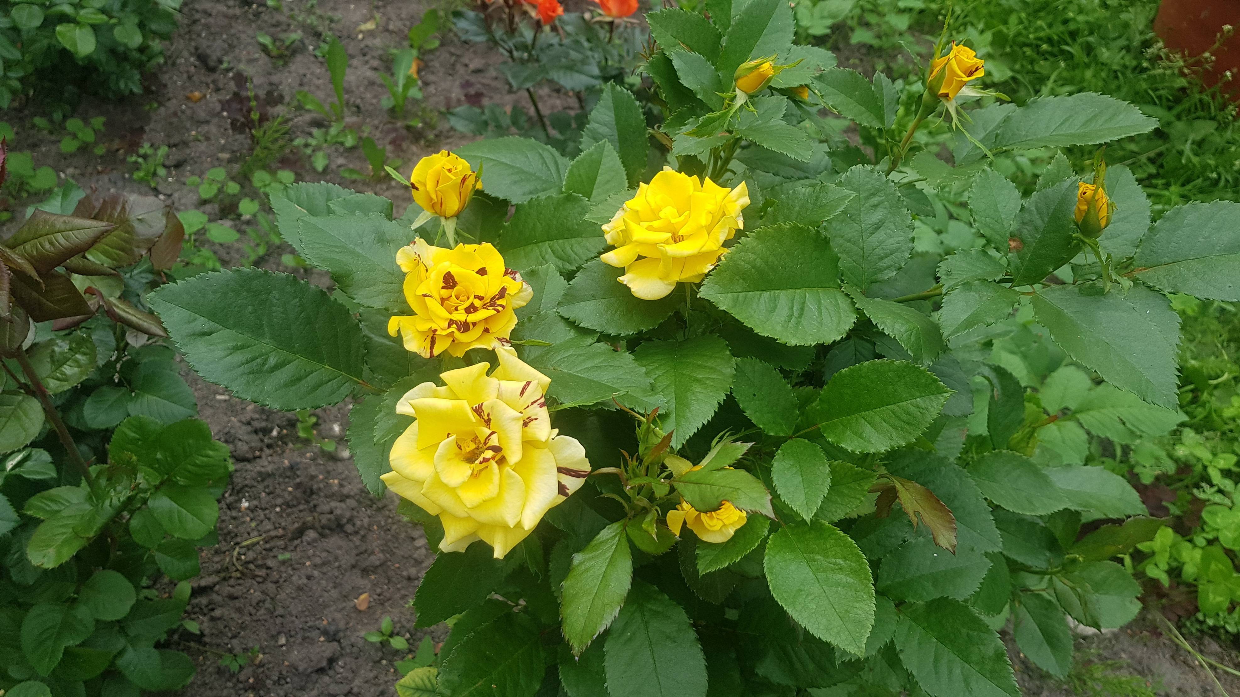 Желтые розы с бордовыми вкраплениями