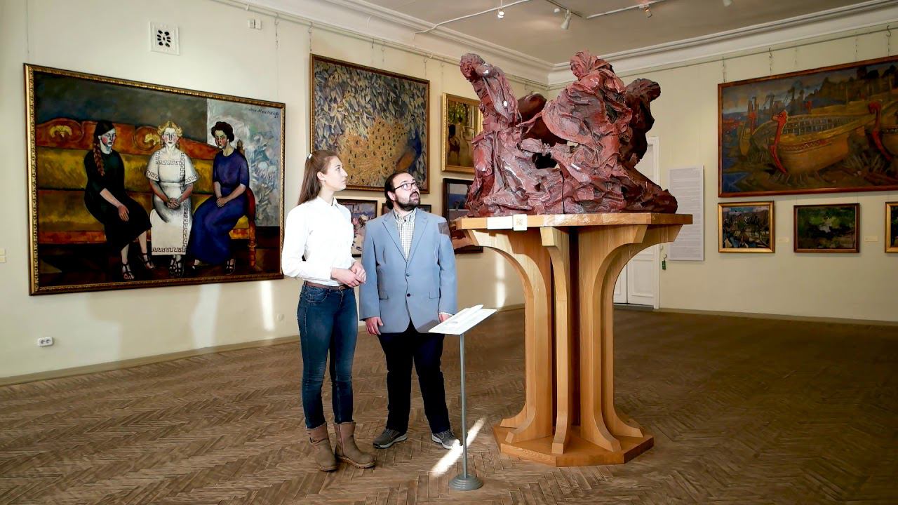 Скульптура "Роберт и монахини". Итальянцы в Сибири. Музей им. М. А. Врубеля, г. Омск. Рассказывает: Якопо Винья-Тальянти, преподаватель иностранных языков, Омский ГАУ. Спрашивает: Юлия Ляхова, слушатель курсов иностранных языков в Лингвистическом центре Омского ГАУ.