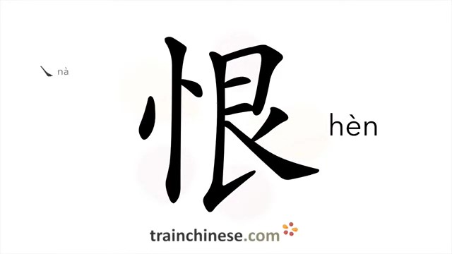 恨 (hèn) to hate; regret