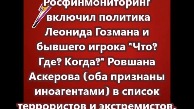 Росфинмониторинг включил политика Леонида Гозмана и бывшего игрока "Что? Где? Когда?" Ровшана Аскерова в список террористов и экстремистов