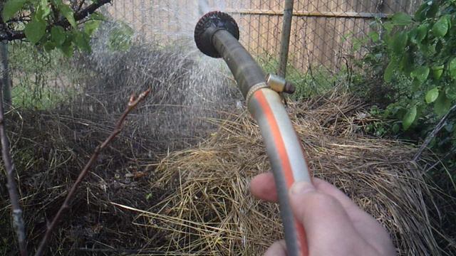 Орошаю дальнюю часть компостной кучи