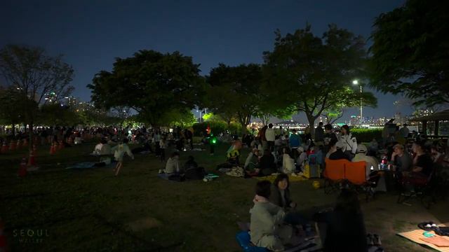 Hangang River's Spectacular Light Festival! Last year's 'Hangang River Light Show (Drone Light Show), which attracted more than 125,000 spectators, is returning this spring! 1,000 drones will illuminate the night sky of the Hangang River. Date: April 27th (Sat) ~ June 1st (Sat) " Location: JamsilHangangPark, tukseomHangangPark Time: (Cultural Arts Performance) 19:00~20:00 (Drone Light Show) 20:00~20:15 [Theme by Date] April 27th (Sat) Jamsil Hangang Park * Enjoy All that Seoul May 6th (Mon) Jamsil Hangang Park Starry Journey with Friends 3 May 11th (Sat) Jamsil Hangang Park * Seoul Retro 4 May 18th (Sat) Jamsil Hangang Park * Adventure of Spirits 5 June 1st (Sat) ° Ttukseom Hangang Park * Sium Sium Hangang Festival Filmed: Saturday, April 27, 2024, 8:00PM KST Weather: Sunny 🌃 Temperature: 19℃ / 66℉