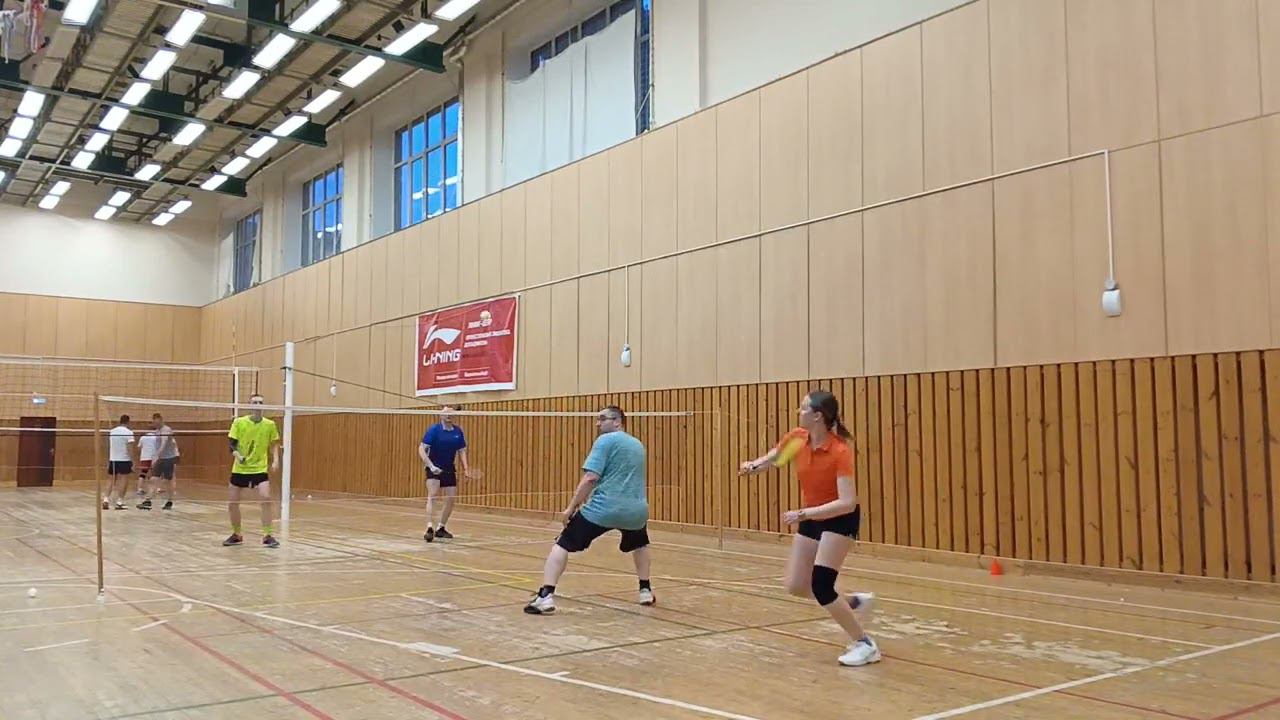 Тренировочная игра в бадминтон через сетку. Играют любители, новички и опытные бадминтонисты. Игра в Лестехе (МГУЛ ранее, сейчас называется филиалом Бауманки). Хочешь тоже играть? Приходи - https://badminton77.ru/map/4/ #badminton #badmintonlovers #badmintonrussia #lesteh #ЛесТех #бадминтон