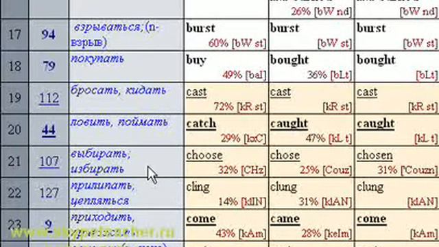 таблица неправильных глаголов английский