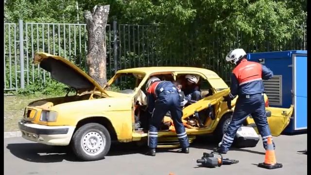 В пожарно-спасательном центре все огнеборцы имеют еще и квалификацию: «спасатель». Собственно навыки спасателя сейчас отрабатываются на площадке, которую условно можно назвать «ДТП».