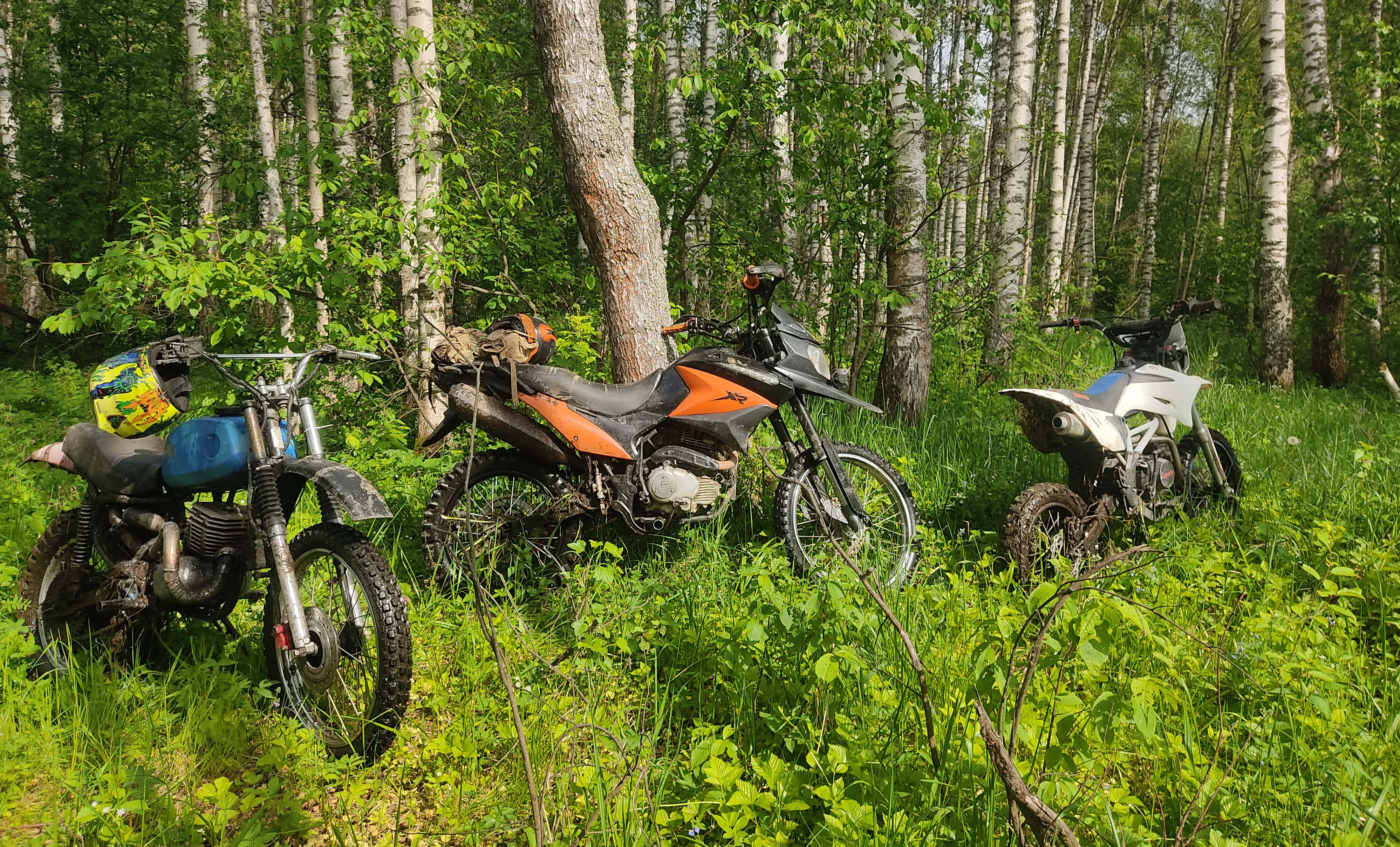 Эндуро выезд в дебри на трёх мотоциклах - болота ручьи и поля