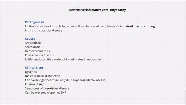 В этом видео вы разберёте и сравните три важных паттерна поражения сердца: констриктивный перикардит, рестриктивную кардиомиопатию и тампонаду сердца. Пошагово объясняю патогенез, ключевые отличия между констриктивным и рестриктивным типами, а также гемодинамические изменения при каждом состоянии. 🩺 Тайм-коды лекции: 00:00 – Констриктивный перикардит Причины, патогенез, основные симптомы Куссмауль сайн: механизм и клиническое значение 06:52 – Рестриктивная кардиомиопатия В чём отличие от констриктивного перикардита Причины, патогенез и симптомы 11:07 – Тампонада сердца Патогенез: сдавление камер сердца жидкостью в перикарде Классические симптомы (триада Бека, набухшие вены шеи, гипотензия, глухие тоны сердца) 📚 Для кого это видео? Студенты, готовящиеся к USMLE Степ 1 и экзаменам по кардиологии Врачи, освежающие знания по патологии перикарда и миокарда Все, кто хочет быстро разобраться в дифференциальной диагностике этих состояний 📢 Вопросы? Пишите в комментариях - помогу разобраться со сложными темами! Ставьте лайк и подписывайтесь, чтобы не пропустить новые лекции! 😊