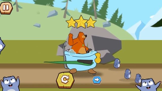 Веселый медведь строит себе гоночную тележку и едет через препятствия