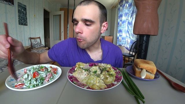 МУКБАНГ АСМР / ГОЛУБЦЫ / САЛАТ / ХЛЕБ / EATING ASMR Mukbang 11. 07. 2023