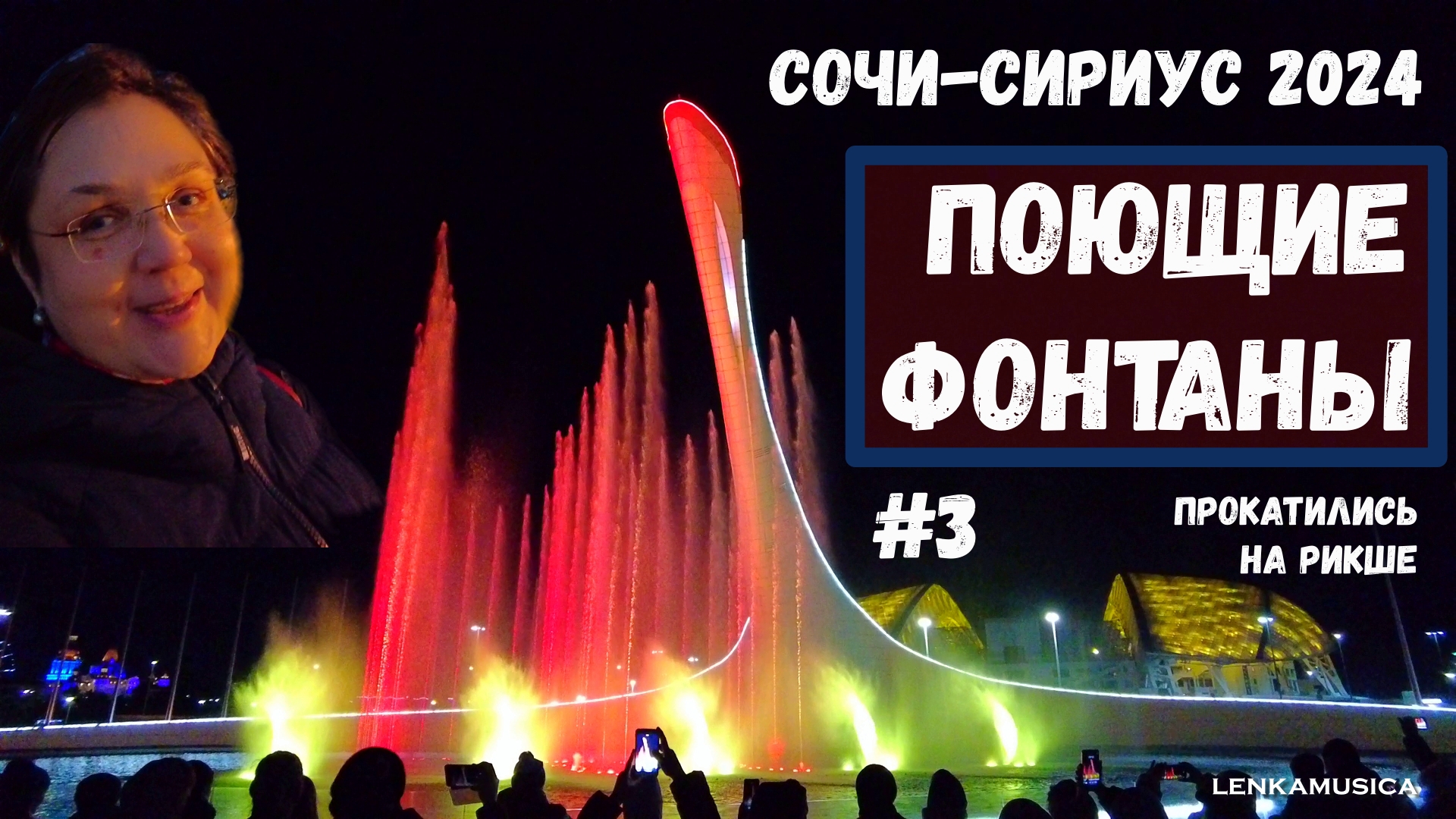 Вечер в Сочи. Поездка на рикше и впечатляющий вид поющих фонтанов. Сочи-Сириус 2024, 3 серия