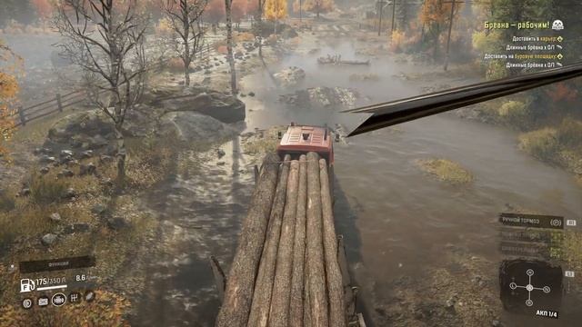 Везу пару длинных бревен на дамбу!