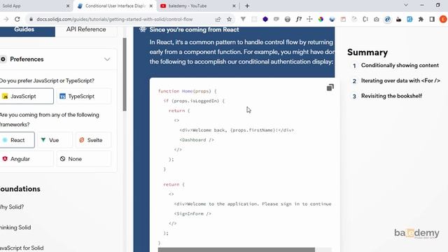 Bagaimana cara menampilkan konten secara kondisional pada solid js? Hi, Daftar dan Belajar Mulai Dari Sini! https://kelas.baledemy.com/contact Follow Sosial Media https://www.instagram.com/ekkyridyanto/ - Donasi Disini (OVO / GoPay / Dana / LinkAja) https://saweria.co/baledemy Semoga Bermanfaat. Terimakasih.