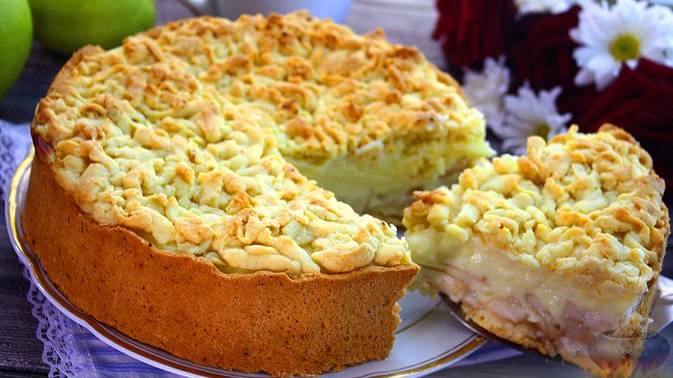 Почти торт. ЯБЛОЧНЫЙ ПИРОГ С ЗАВАРНЫМ КРЕМОМ