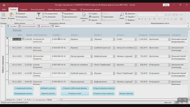 Автоматизированная информационная система (АИС) ресторана. Программа на MS Access. Курсовая работа