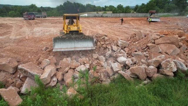Проект 1: Часть 6 - Бульдозеры KOMATSU D65e и D61ex толкают камни и выравнивают землю.