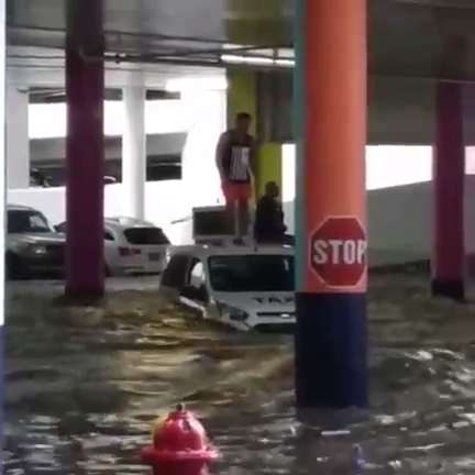 Таксист с пассажиром в Лас Вегасе застряли под мостом из-за наводнения #наводнение #потоп #такси