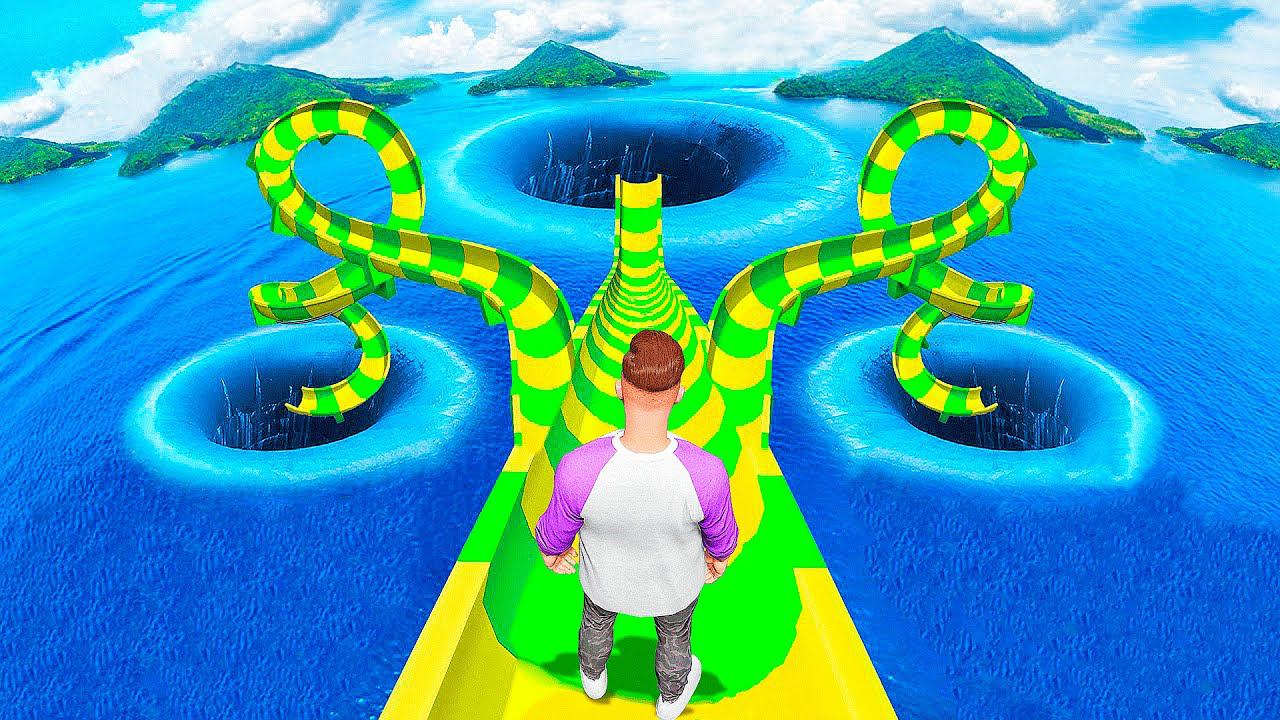 ОПАСНЫЙ СПУСК СО СКОЛЬЗКОЙ ГОРКИ в АКВАПАРКЕ в ГТА 5 МОДЫ - ОБЗОР МОДА В GTA 5 ВИДЕО MODS