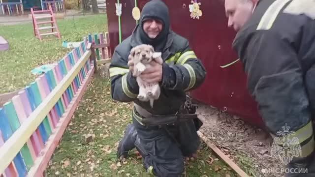 Заволжские пожарные поймали щенков в детском саду