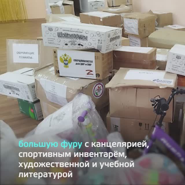 Волонтеры региона-шефа привезли канцтовары, спортивный инвентарь, художественную и учебную литературу для школьников, воспитанников Дома детского и юношеского творчества, посетителей библиотек. Ссылка на новость на портале "Возродим Донбасс" - https://возродимдонбасс.рф/news/details/sverdlovskaya-oblast-dostavila-gumpomoshh-detyam-telmanovo С уважением, Администрация портала "Возродим Донбасс" https://возродимдонбасс.рф