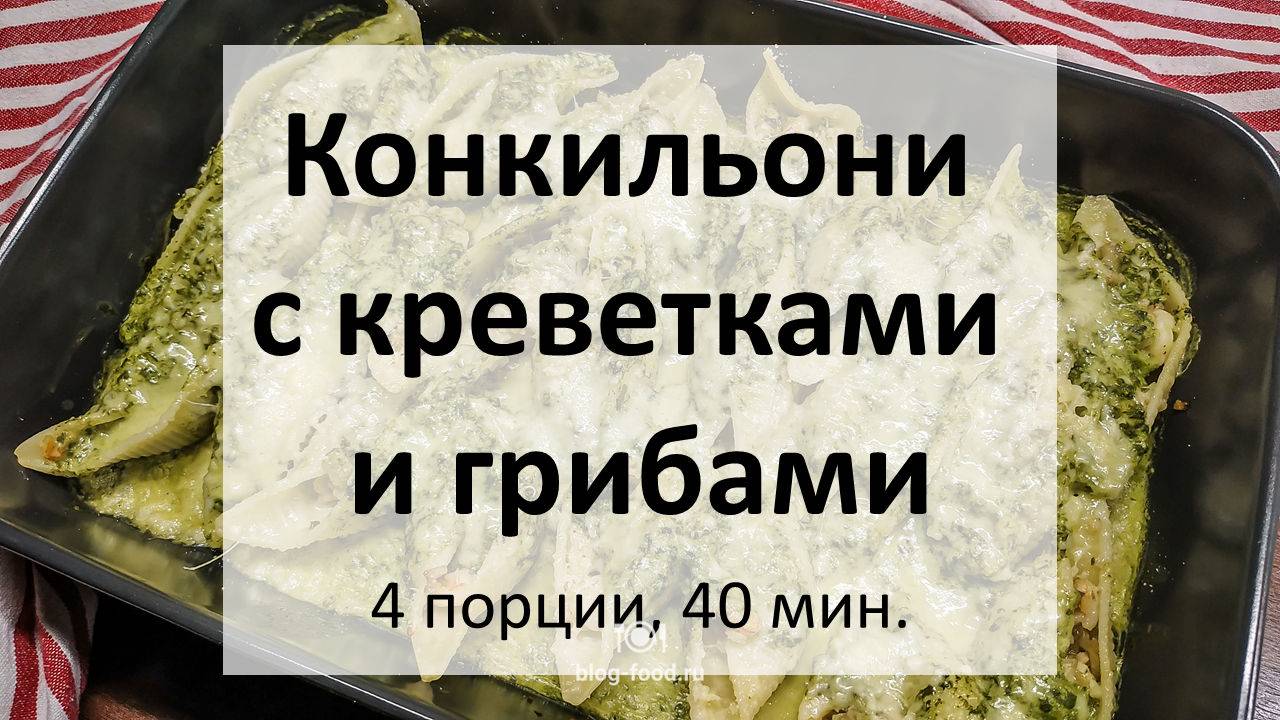 Добрый день! Сегодня у нас конкильони — эдакие большие ракушки, куда изобретательные итальянцы пихают всяческую начинку. Блюдо, сами понимаете, многовариантное, поскольку в качестве наполнителя может выступать всё, что угодно — от вяленых томатов до болонского рагу. Мы сделаем вариант с грибами и креветками, а дополнительно запечём эту красоту в сливочном соусе с пармезаном. • Конкильони, 150 гр. • Сливки, 200 гр. • Шампиньоны, 100 гр. • Шпинат с/м, 100 гр. • Пармезан, 30 гр. • Тигровые креветки, 12 шт. • Чеснок, 1 зубец • Лук, 1 шт. • Чёрный перец, растительное масло, соль Разогреваем духовку до 180°С. Лук и грибы режем мелким кубиком, креветки очищаем, удаляем пищевод, нарезаем кубиком, сыр натираем на мелкой тёрке, чеснок и шпинат рубим мелко. Конкильони отвариваем в кипящей подсоленной воде 12 минут, промываем холодной, оставляем в сторону. Обжариваем в небольшом количестве растительного масла на сильном огне лук и чеснок в течение минуты, добавляем креветки, грибы, жарим ещё три минуты, солим и перчим по вкусу. Начиняем конкильони креветочно-грибной смесью, укладываем в форму для запекания в один слой. Смешиваем сливки со шпинатом, солим по вкусу, заливаем получившимся соусом конкильони и отправляем в духовку на 10 минут, вытаскиваем, посыпаем пармезаном и запекаем ещё 5 минут. Раскладываем по тарелкам и подаём, полив оставшимся в форме соусом. Приятного аппетита! Текстовая версия на сайте: https://blog-food.ru/1026 #кулинария #рецепты #еда #blogfood #рецепт #итальянскаякухня #паста #морепродукты #сливки