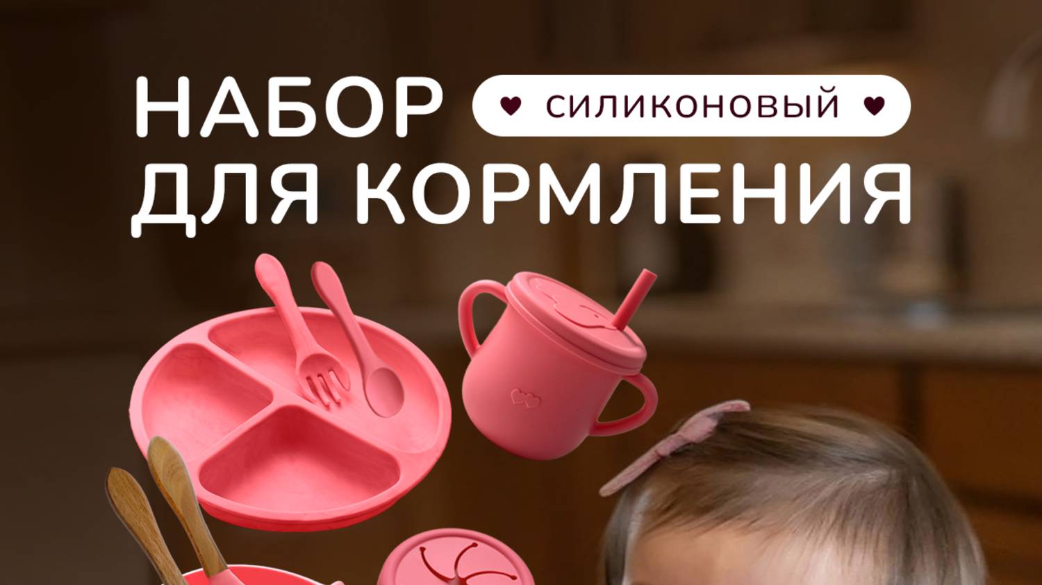 Набор детской посуды для кормления розовый 12 предметов
