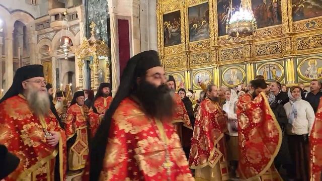 Начало ночной праздничной Патриаршей Литургии - торжественное шествие к Кувуклии