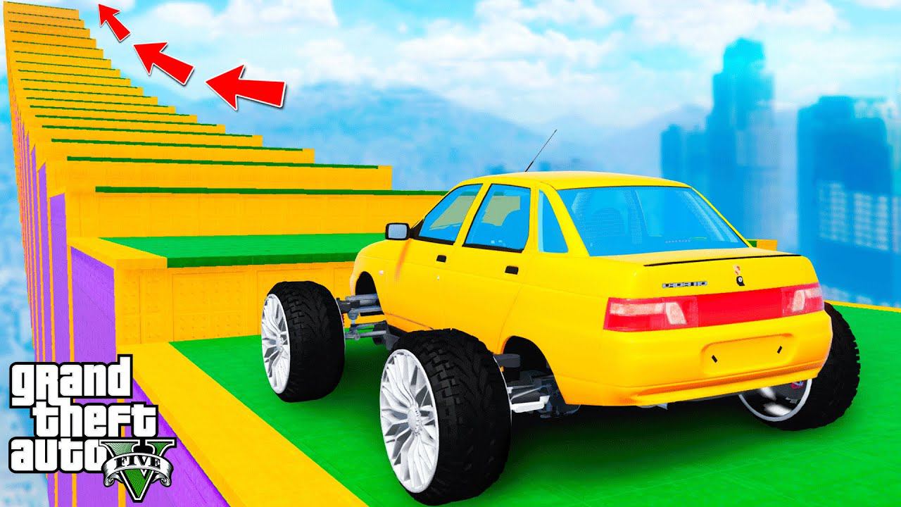 КАК ДАЛЕКО ТУРБО-ДЕСЯТКА СМОЖЕТ ЗАБРАТЬСЯ ПО СТУПЕНЬКАМ ЛЕСТНИЦЫ в ГТА 5 МОДЫ - ЭКСПЕРИМЕНТЫ в GTA 5