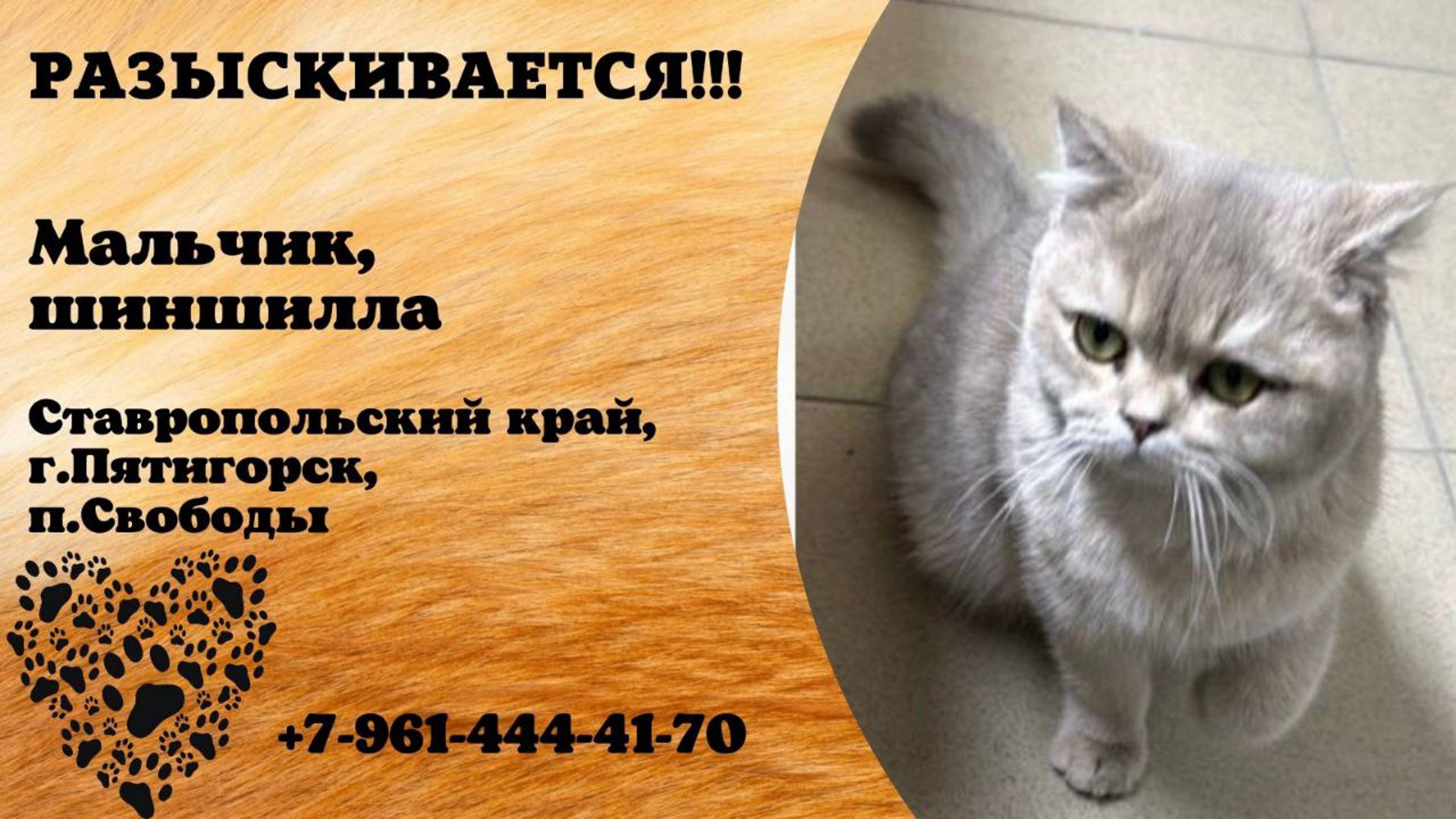 Пропал кот! Мальчик. Шиншилла. Ставропольский край, г. Пятигорск