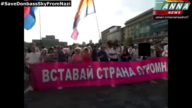 The Kiev Junta offense. Kharkiv. Peoples voice: "Junta stop this criminal war!" Kharkiv never tires of reminding the Kiev Junta that it was and will be a Russian city! At 5 p.m. (Kiev time) about a hundred Kharkiv locals came to the rally in supporting of the Donetsk People's Republic. With the DPR, the Southeastward and the USSR flags and a banner with the call -- Stand up huge country!