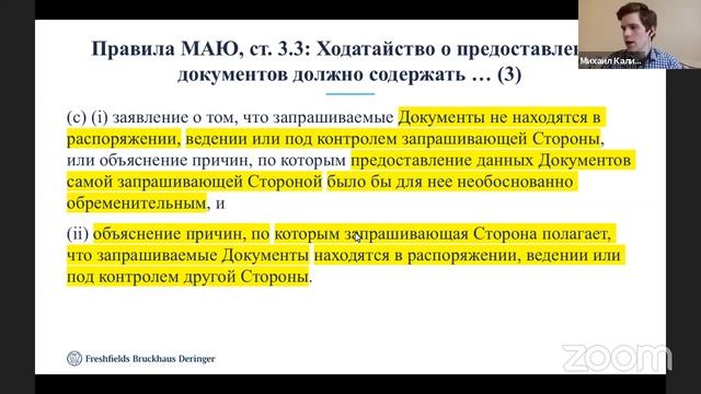 31 Марта состоялась очередная лекция из курса по Международному Коммерческому Арбитражу в рамках Школы Мастеров. Михаил Калинин (Freshfilds) прочитал лекцию по теме : "Доказывание в МКА” a. Отличия от гражданского процесса в России; b. Подготовка свидетельских показаний и допрос свидетелей c. Истребование документов в международном арбитраже Не прогуляй свое будущее!
