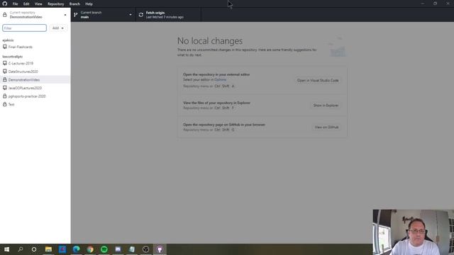 This video shows how to use the GitHub Desktop to fetch from the online repository. This is used when your local files are behind the current branch.