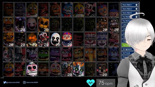 My human body has also gained a new ability 04:17 START Next Part: (TBD) Previous Part: https://youtube.com/live/jer4lkG8lFo FNAF Ultimate Custom Night Playlist: https://youtube.com/playlist?list=PLgAJWot2hdHnVM6kc3QzniQkgGh36CToL = = = = = = = = = = = = = = = = = = = = = = = = = = = Thank you SO MUCH for watching my streams 😆 To keep things enjoyable for everyone, please follow below: Things to NOT comment 1. Spoilers on the game I'm streaming 2. My name on OTHER streamer's contents 3. Other streamer's name unless I mention it first or I am collabing with them 4. Unrelated topics or personal conversations. Pls keep chat about the stream :D 5. Spam or trolling. Ignore and report if you see em 🙏 6. Bad vibes (just follow the guideline and be nice pls 🙇) Things okay to comment :D 1. Helpful advice or hints if I'm struggling in game 🙇 2. Good vibes. Keep it positve, and I love you 😆 = = = = = = = = = = = = = = = = = = = = = = = = = = = SOCIAL MEDIA X → twitter.com/mashumaro0406 Instagram → instagram.com/mashumaro0406 For requests of collab, email me at maromashu46@gmail.com (Generally, I won't be playing with viewers but may do viewer collab specials) Apologies in advance if your email gets buried and I don't see them 😓 Stream Hashtags #mashustreams #fnafucn