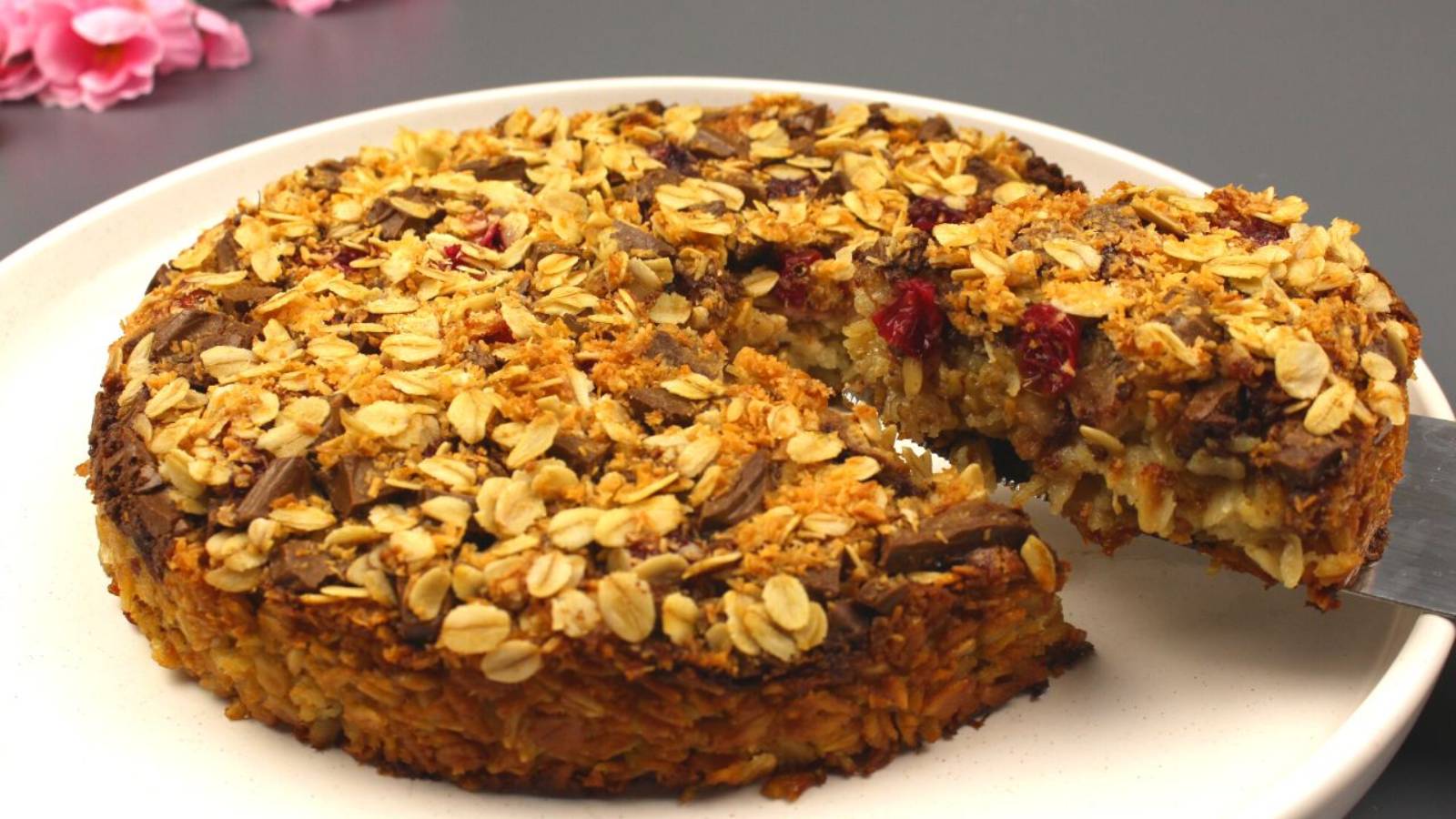 Возьмите овсянку, ягоды, шоколад и приготовьте полезный пирог. Без сахара! Без муки!