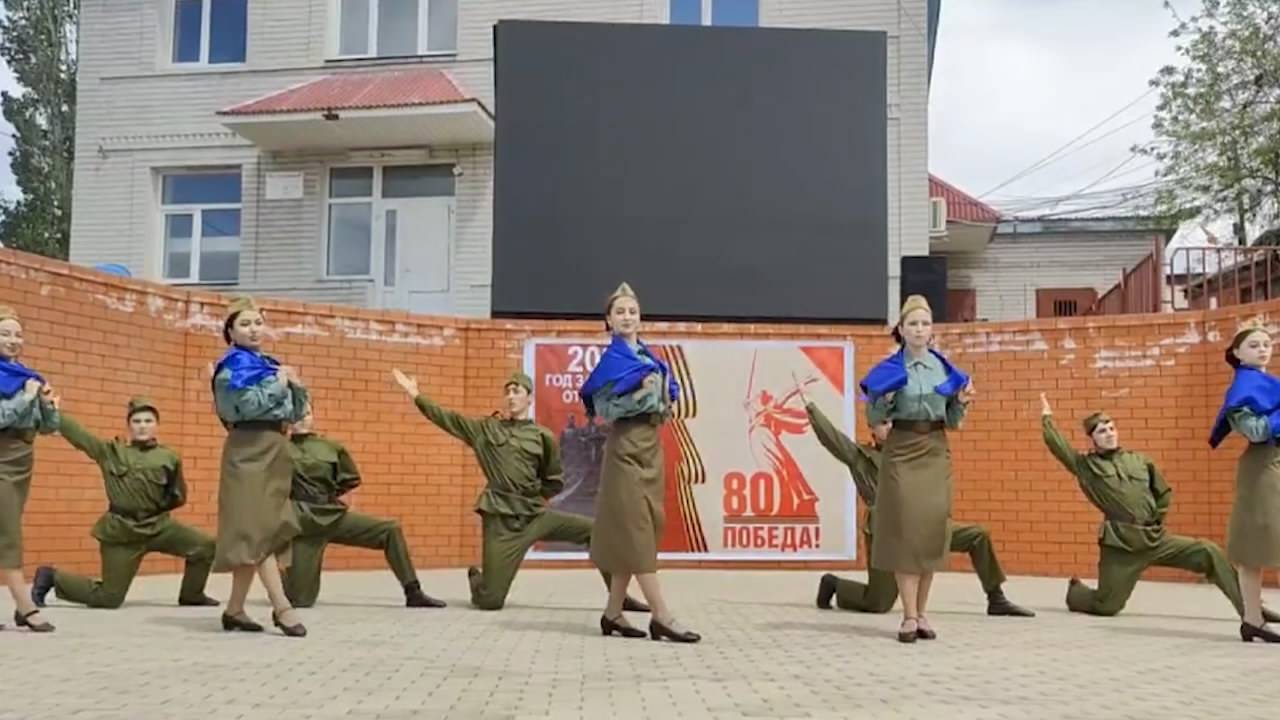 Под звуки «Синего платочка» фольклорно-хореографический ансамбль «Ботлих» управления культуры представили постановку патриотического военного танца. Эта акция - символ нашего единства, памяти и уважения к подвигу тех, кто сражался за свободу и независимость нашего Отечества.