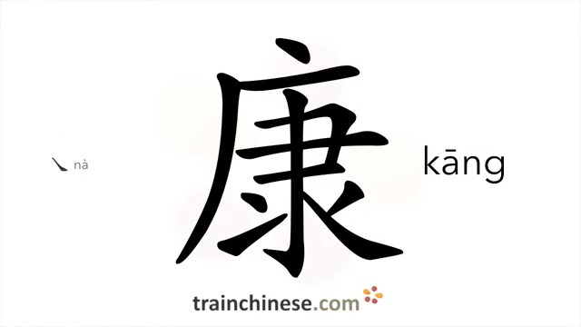 康 (kāng) health; peaceful; spongy