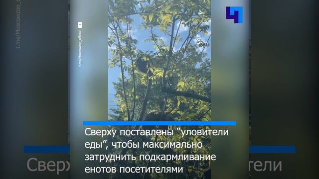 Еноты облюбовали деревья в своем новом вольере в Московском зоопарке