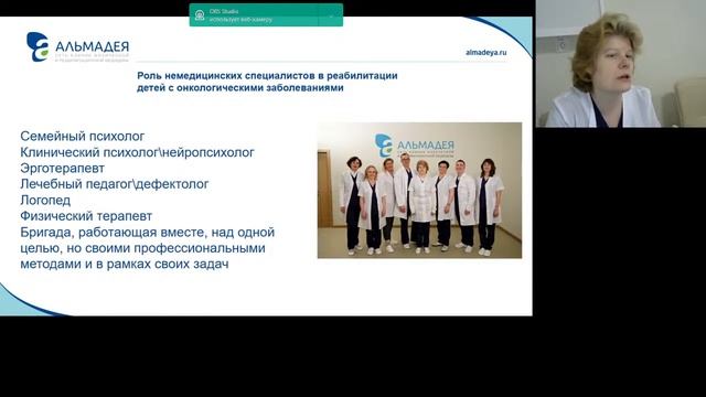 КРУГЛЫЙ СТОЛ 5 июня 2021 года в 11-00 РЕАБИЛИТАЦИЯ ДЕТЕЙ С ОНКОЛОГИЧЕСКИМИ ЗАБОЛЕВАНИЯМИ И ПРАВА РЕБЕНКА Выступления на тему: Кулева Светлана Александровна – д.м.н., заведующий детским онкологическим отделением, врач-детский онколог, ведущий научный сотрудник, профессор, главный внештатный детский специалист-онколог Комитета по здравоохранению Санкт-Петербурга. Право на жизнь. Диагностика и лечение, современные возможности, проблемы отсутствия настороженности у врачей и родителей при жалобах детей, малая информированность общества о возможностях лечения. Право жить, а не только лечиться. Мельникова Елена Валентиновна - д.м.н, заведующая кафедрой клинической медицины и медицинской реабилитации СПБМСИ, член Президиума Общероссийской общественной организации содействия развитию медицинской реабилитологии «Союз реабилитологов России», главный внештатный специалист по медицинской реабилитации Министерства здравоохранения Российской Федерации в СЗФО (Санкт-Петербург). О био-психо-социальном подходе, о новой системе реабилитации. Шмонин Алексей Андреевич - д.м.н., профессор кафедры клинической медицины и медицинской реабилитации СПБМСИ, главный врач сети клиник физической и реабилитационный медицины «Альмадея», Ревизор Санкт-Петербургского отделения Союза Реабилитологов России О возможностях медицинской реабилитации детей с онкологией на основании практического опыта. Мальцева Мария Николаевна, профессор, руководитель службы социальной реабилитации сети клиник физической и реабилитационный медицины «Альмадея» Роль немедицинских специалистов в реабилитации детей с онкологией.