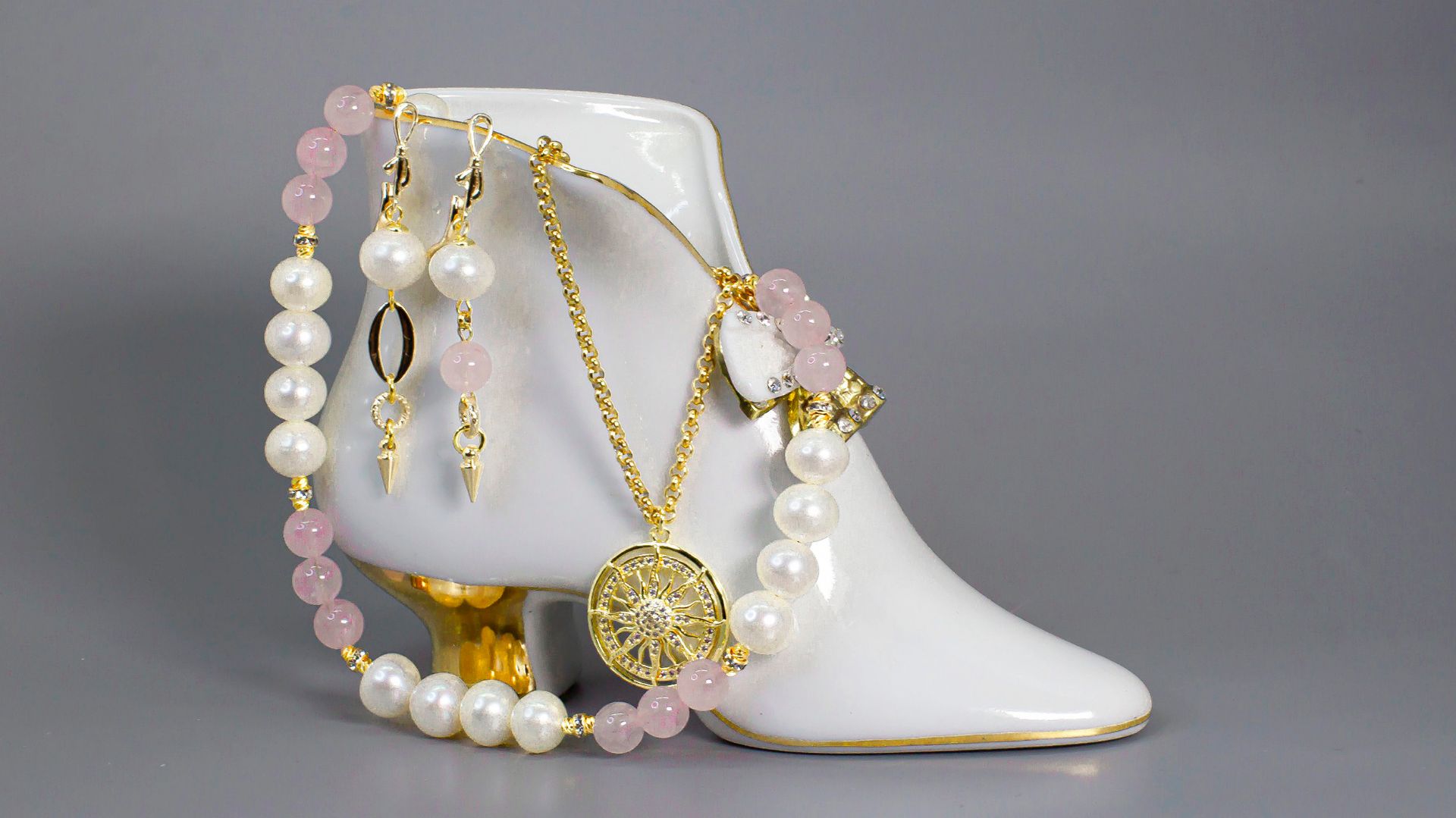Victoria SerVic Жемчуг натуральный, розовый кварц, ювелирное стекло, оригинальная подвеска, фурнитура класса люкс