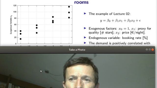 In this lecture, you will learn about the statistical properties of the ordinary-least squares (OLS) estimator: if the Gauss-Markow assumptions are fulfilled, it is unbiased and multivariate Gaussian. I also give a first application: confidence intervals. As example, I apply the demand model for hotel rooms, known from Lecture 02, throughout this lecture.