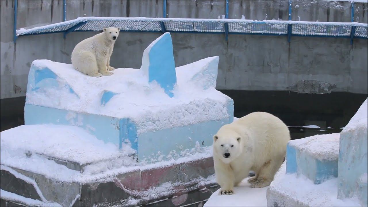Герда родилась в Москве 20 ноября 2007 года. Её мама Симона, папа Врангель. В Новосибирск переехала 05.08.2008. В 2013 году у Герды и Кая родилась Шилка. В 2015 году она переехала в Японию. В 2015 году родился Ростик. 6 декабря 2018 года он переехал в Китай. В 2018 году родились Норди и Шайна. Данная пара молодых медведей находилась вне экспозиции зоопарка, поэтому посетители не могли их видеть. Передача молодых медведей в другой зоопарк не планируется, — ответили на запрос редакции в пресс-центре мэрии Новосибирска. Но Шайна 20 января 2024 года переехала в Ижевский зоопарк. Белые медведи одиночные животные. Как правило, миролюбивы по отношению друг к другу, но между самцами в брачный период случаются стычки. Взрослые самцы могут нападать на медвежат. Гон с марта по июнь. Продолжительность жизни — максимум 25—30 лет; в неволе рекорд долгожительства — 42 года. Вес очень крупных самцов в некоторых частях ареала 700 и даже 800 кг: есть данные о зверях весом до 1000 кг. Обычно вес меньше. Самки всегда не только меньше, но и значительно легче самцов. Так, самцы в восточной Гренландии в состоянии нормальной упитанности весят 400—450 кг, хорошо упитанные — до 500 кг, самки, даже очень сытые, здесь же редко весят больше 350—380 кг, т. е. их вес составляет около 75% веса самцов. Длина тела на 3-й день после рождения 28—32 см, средний вес — около 755 г (650—840 г). На 26-й день длина тела увеличивается незначительно — до 35—38 см, а вес возрастает до 1125—1275 г. В возрасте 60 дней самцы весят около 7 кг, самки — около 6 кг при длине тела у первых 58—60 см, у вторых 54—58 см. В возрасте 4 месяца медвежата достигают веса 22—23 кг, в 6-месячном возрасте при длине около 110 см — 40—43 кг, в 8-месячном — 58—62 кг. Длина тела в возрасте с 6 до 9 месяцев нарастает по 6—7 см в месяц. Во время зимнего сна рост почти прекращается. В зоопарке медведей кормят утром морской рыбой, хлеб с рыбьим жиром внутри, морковь, яблоки, морская капуста, яйцо дают сырое. Медвежат подкармливают молоком из соски. На ужин мясо (говядина, конина, куры или индейка). Летом и осенью арбузы, дыни, ранетки, кабачки, тыквы, огурцы. Когда показательное кормление летом бросают живую рыбу. Медвежата с медведицей находятся до 2-х лет. 16 декабря 2022 года Герда родила 2-х медвежат. И это две девочки! Имена дали 25 июня. Медвежат зовут Стрелка и Белка. Обзор вольеров белых медведей https://www.youtube.com/watch?v=mAt_b7JD0B4&list=PLGvf0V-rAHxkpGKJaWIZIUxRKgKiqV3xZ&index=17&t=0s