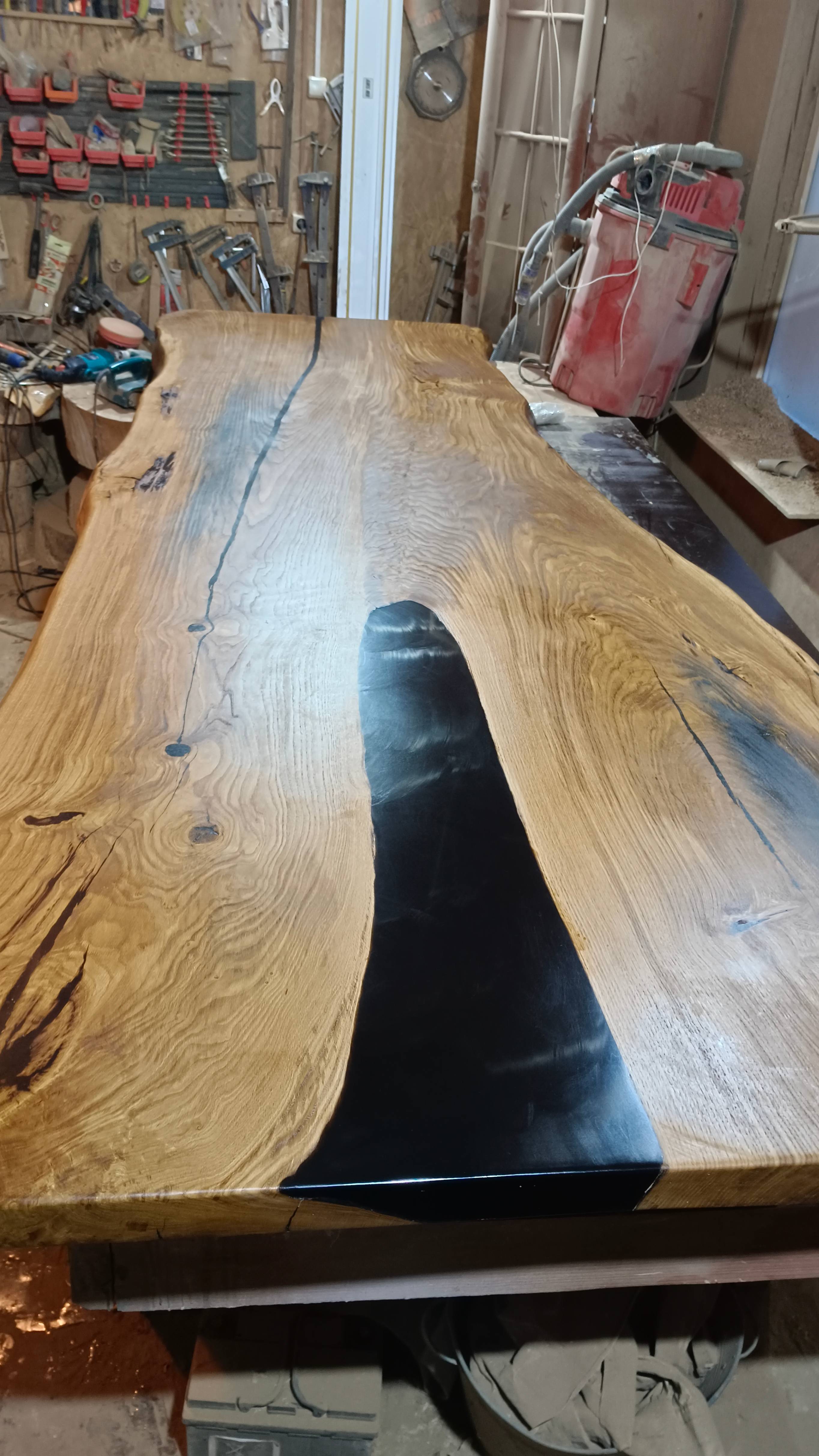 Создание огромного дубового стола из цельного слэба дерева и эпоксидной смолы. Этап 5.